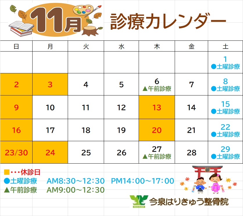 11/6(木)、11/27(木)は午前中のみの診療となります。