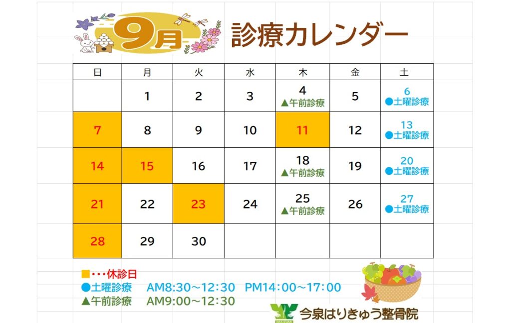 9月の診療カレンダーとなります。