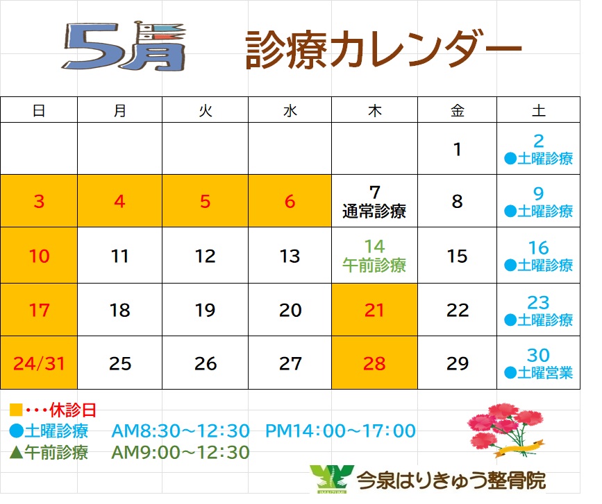 5月の営業カレンダーとなります。