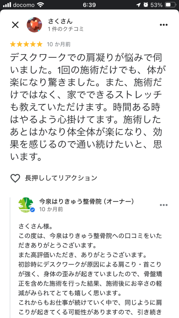 更に、再発しにくいようにストレッチ、正しい姿勢を保つためのレクチャーも行います。